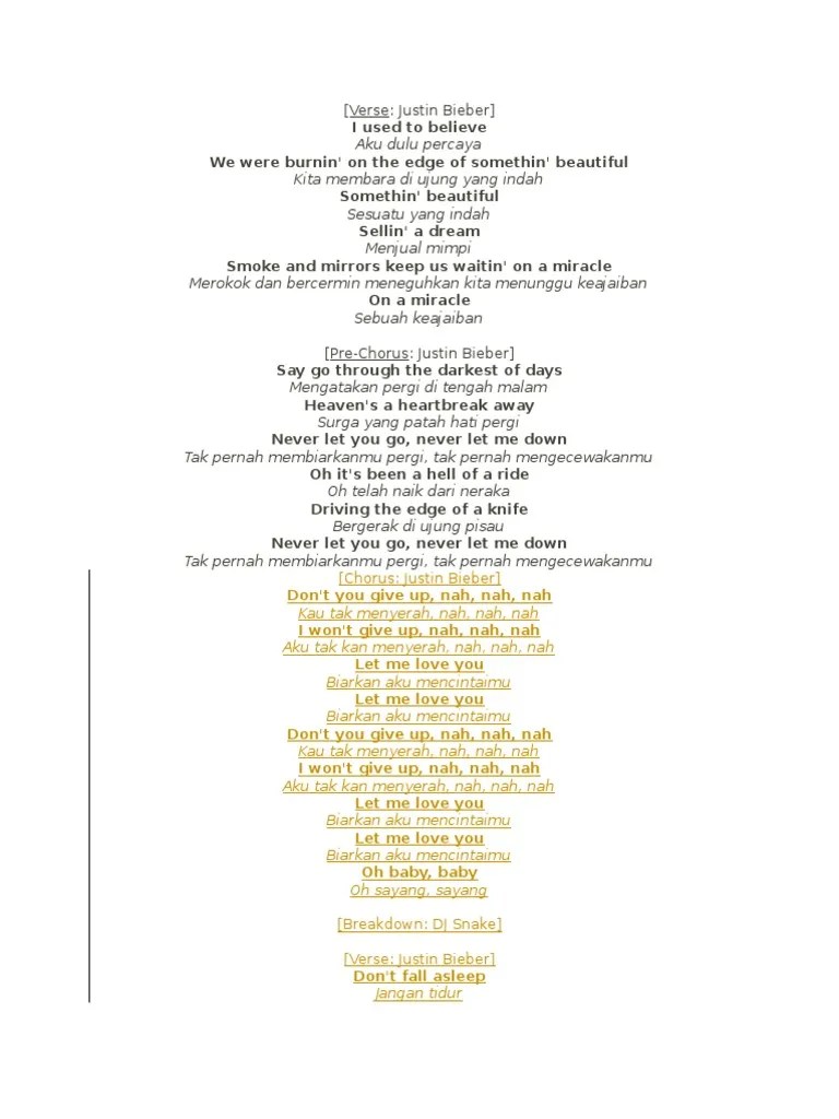Arti Lirik Let Me Love You / Dj Snake Let Me Love You Ft Justin Bieber Video Lirik Dan Terjemahan Bahasa Indonesia Youtube / Lagu ini kembali viral digandrungi oleh banyak orang terutama kaum milenial.